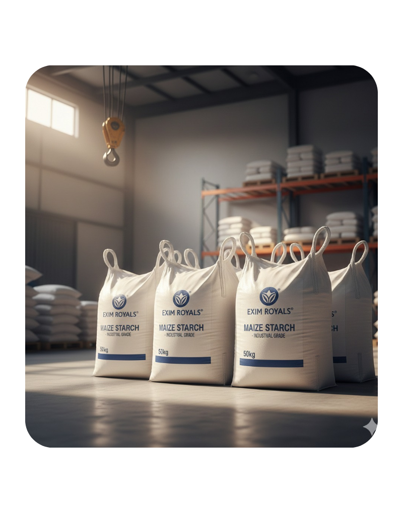 Exim Royals Industrial Grade Maize Starch is a high-viscosity, non-foaming binder specifically engineered for the corrugation and paper industries. It provides excellent tack and bonding strength, making it ideal for the production of corrugated boards, paper sacks, and textile finishing.