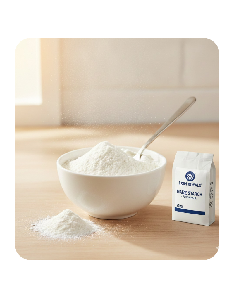 A fine, white, odorless powder extracted from premium Indian yellow maize. It is a highly versatile carbohydrate used as a thickener, stabilizer, and clouding agent in food and industrial applications.